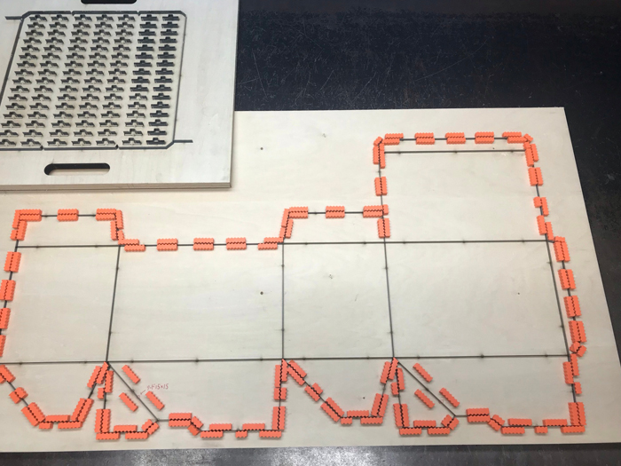 抜型は、切り抜きたい形状に曲げられた刃物(例えば、クッキーの型のようなもの)の下部分をベニヤ板で支えることで作られます。